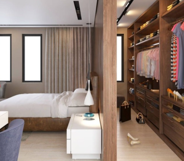 당연하게도 침대가 있고 옷을 수납하는 장롱 등이 있으며, 드레스룸이나 화장실이 딸려 있는 경우도 많다.