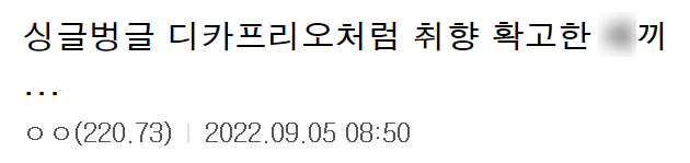 이에 대해 한 온라인 커뮤니티에서는 “싱글벙글 디카프리오처럼 취향 확고한 남자”라는 제목의 글이 올라왔다.