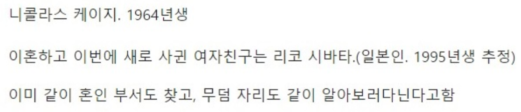 또다른 확고한 취향을 가지고 있는 미국배우 니콜라스 케이지이다.