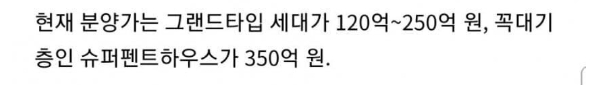 건물에서도 전망이 가장 좋고 테라스나 베란다 등을 다른 층보다 최대한 넓힐 수 있기 때문에 상대적으로 가격이 매우 높다.