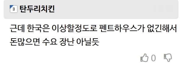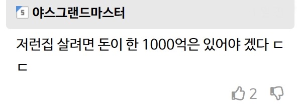 매매가는 기본적으로 수십억이며 월세도 웬만한 고소득자 반년치 월급 수준, 가끔 이러한 집들을 아파트라고 착각하는 경우가 있다.