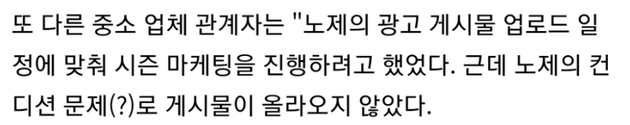 노제는 게시물 1건당 수천만원을 받고 진행한 중소기업 광고물을 sns에 올리지 않거나 무단으로 삭제하고 명품 브랜드 아이템만 남아있어 ‘연예인병’에 걸렸다는 비판을 받고 있다.