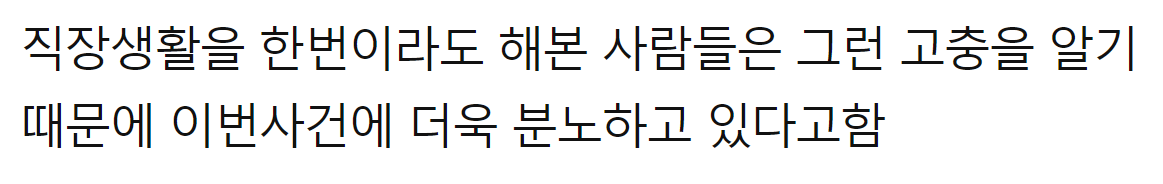 해당 사건에 관련해 특히 직장인들 사이에서 큰 분노를 보이고 있다고 하는데, 한 온라인 커뮤니티에서는 그 이유에 관한 예시가 올라와 수많은 누리꾼들의 이목을 집중시켰다.