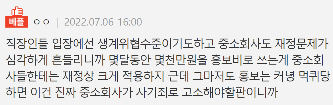 해당 사건으로 인해 다수의 중소기업 업체들이 마케팅 진행에 있어 차질을 빚는 불편함을 겪게 됐다고 주장했다.