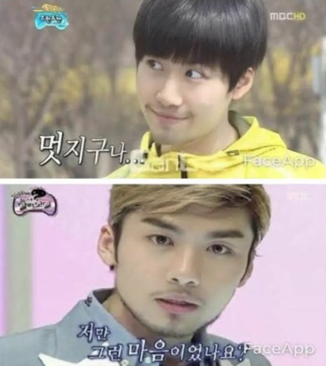 해당 글에 올라온 사진들을 보면 무한도전의 멤버들을 최근 유행하는 아이돌처럼 보정하는 어플을 이용해 아이돌 가수처럼 보정한 것이다.