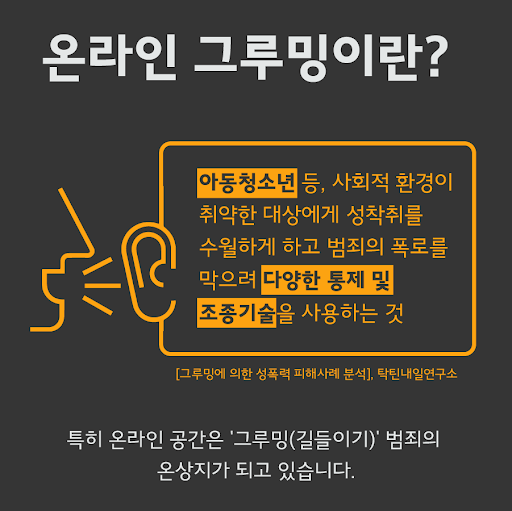 온라인에서 정서적 지지를 보내며 상대방과 친밀감을 형성한 뒤, 성(性)적인 사진이나 영상물 등을 착취하는 ‘그루밍’ 범죄를 벌인 가해자들이 경찰에 붙잡혔다.