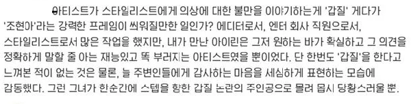 인스타그램 사용자 A씨는 “아티스트가 스타일리스트에게 의상에 대한 불만을 이야기하는 게 갑질. 게다가 조현아라는 강력한 프레임이 씌워질만한 일인가?”라고 말문을 열었다.