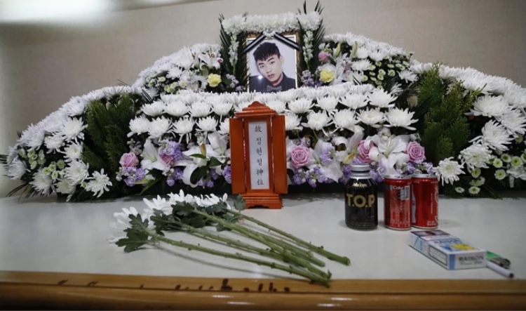 갑작스럽게 세상을 떠난 고 아이언(정헌철) 영정 앞에 놓인 물건들이 슬픔을 자아내고 있다.