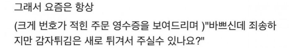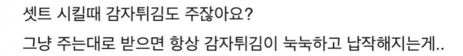A씨는 “셋트 시킬때 감잦튀김도 주잖아요?” 라고 전했다.
