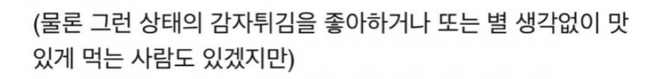 감자 튀김을 절대 입에 대면 안 되는 음식인 것처럼 생각하는 경우도 있는데 이는 극단적인 시선이다.