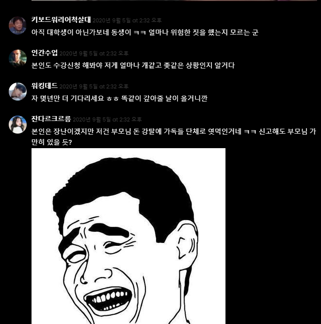 17살 쳐먹은 제 동생이 제가 오늘 수강신청한거(7학기) | 오후 3시경에 수강취소해버리고 방금 밥먹다가 놀리듯이 저한테 말했습니다…