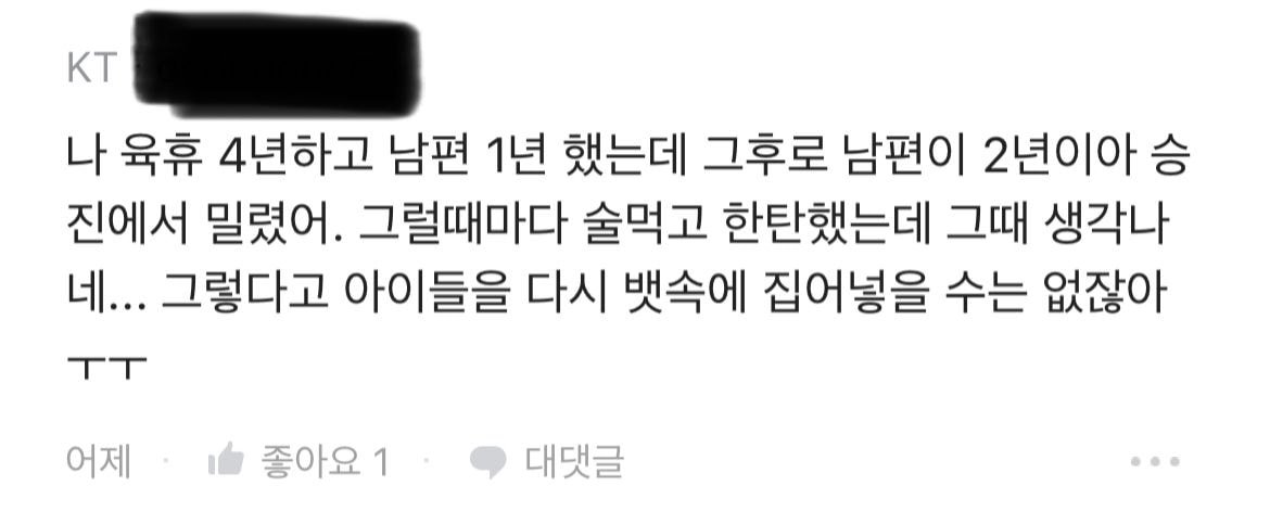 출산육아로 인한 커리어 손해로 괴로워하는 아내