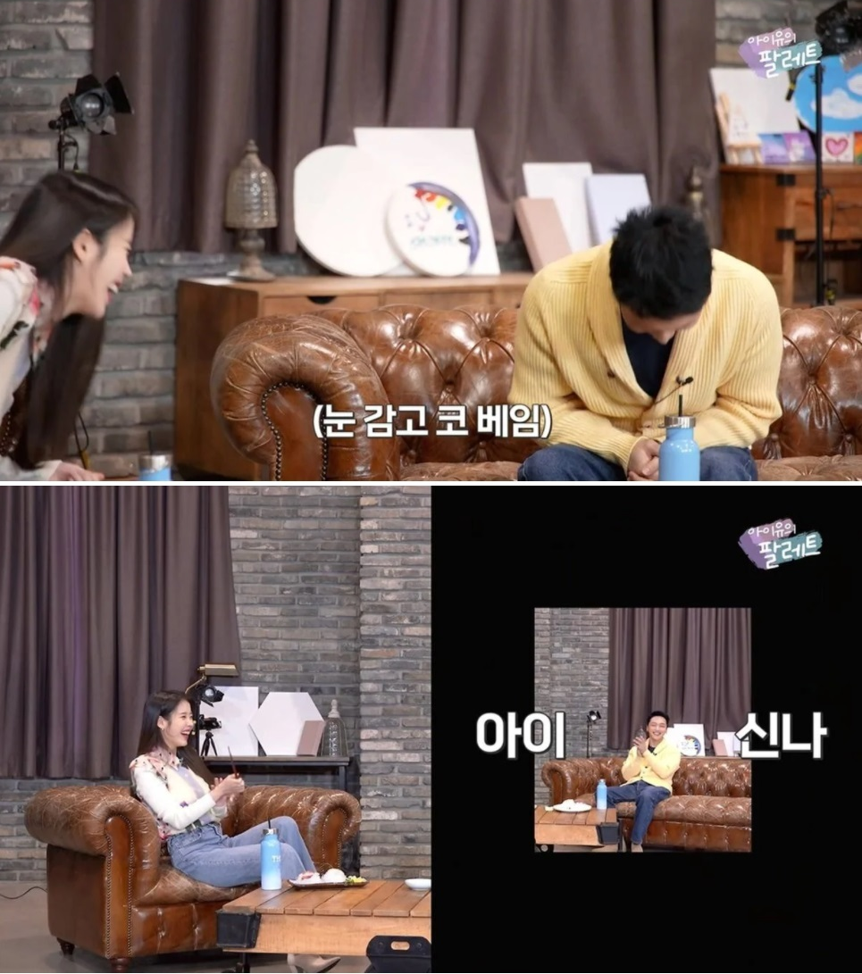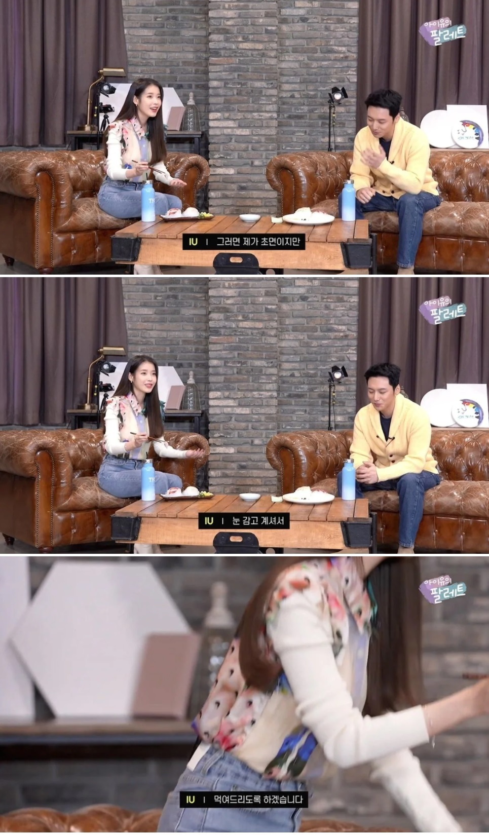 아이유는 “그러면 제가 초면이지만 눈 감고 계시면 먹여드리겠다”고 설명했다.