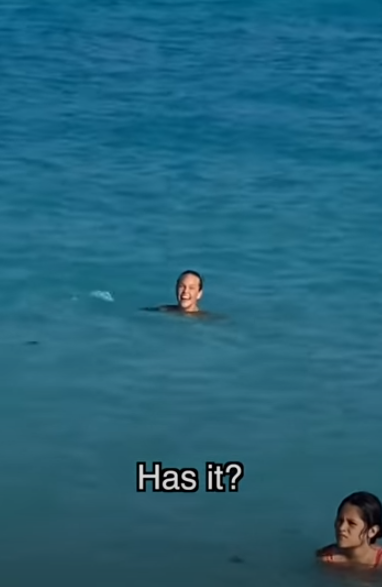 바다에 들어가서 놀던 여자친구를 찍는 데인은 여자친구가 당황한 모습을 확인했다.