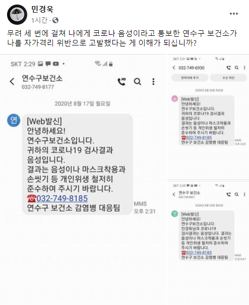 오늘 (1일) 인천시 연수구는 감염병의 예방 및 관리에 관한 법률 위반 혐의로 민 전 의원을 경찰에 고발했다고 밝혔다.