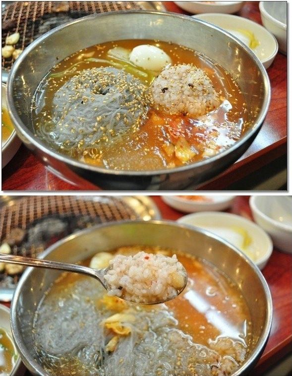 해당 게시물에서는 밥과 함께 먹기에 다소 괴이한 음식들을 밥과 함께 먹는 사진을 소개했다.