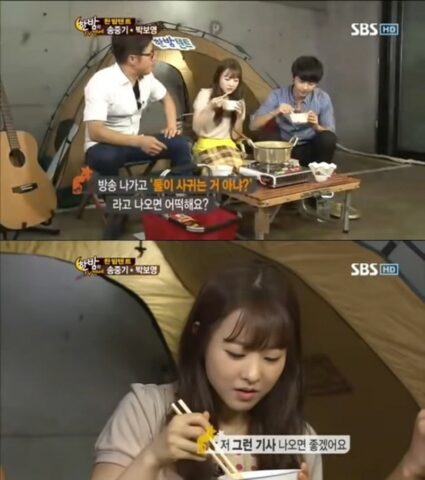 또 SBS 예능 프로그램 ‘한밤의 TV연예’에서도 “텐트치고 놀러가 본 적 있냐”는 질문을 받은 박보영이 “초등학교 때 텐트치고 놀러가 본 적 있다”고 답하자, 송중기가 “저는 보영 씨랑 놀러가려고요”라고 말했다.