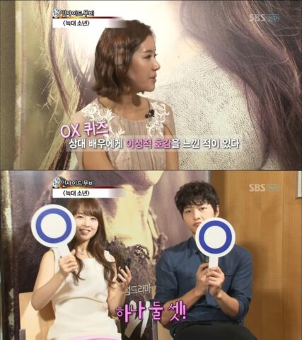 상대 배우에게 이성적 끌림을 느낀 적이 있다는 OX퀴즈에도 박보영과 송중기는 “O표시”를 들었고, 이에 MC가 “박보영의 이상형은 사실 여진구 아니냐”고 질문하자, 송중기가 “화장실 다녀올게요. 얘기하고 계세요”라고 대답하며 자리에서 일어서기도 했다.