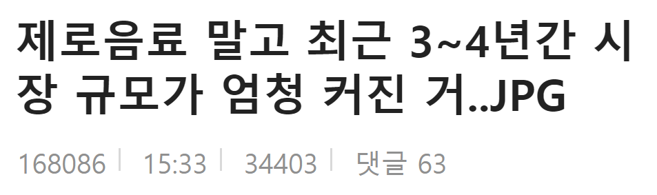 이에 관련해 한 온라인 커뮤니티에서는 “제로음료 말고 최근 3~4년간 시장 규모가 엄청 커진거”라는 제목의 글이 올라왔다.