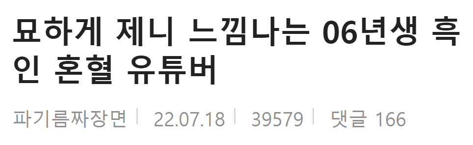 이에 관련해 한 온라인 커뮤니티에서는 “묘하게 제니 느낌나는 06년생 흑인 혼혈 유튜버”라는 제목의 글이 올라왔다.