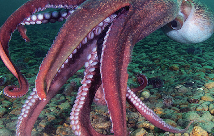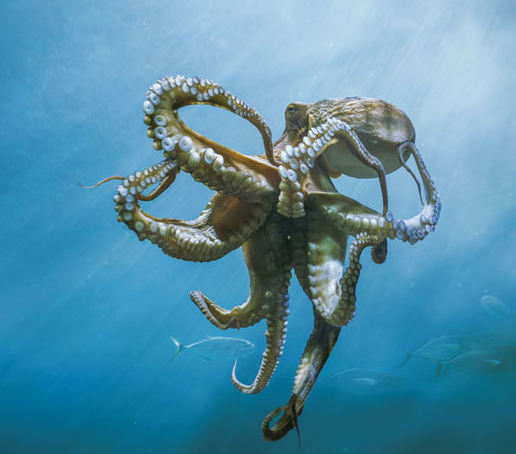 문어는 문어목 혹은 팔완목에 속하는 무척추동물을 이르는 말이다.
