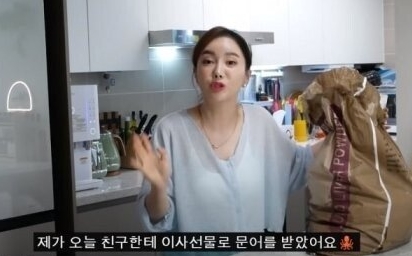 유튜버는 “제가 오늘 친구한테 이사선물로 문어를 받았어요” 라 말문을 열었다.