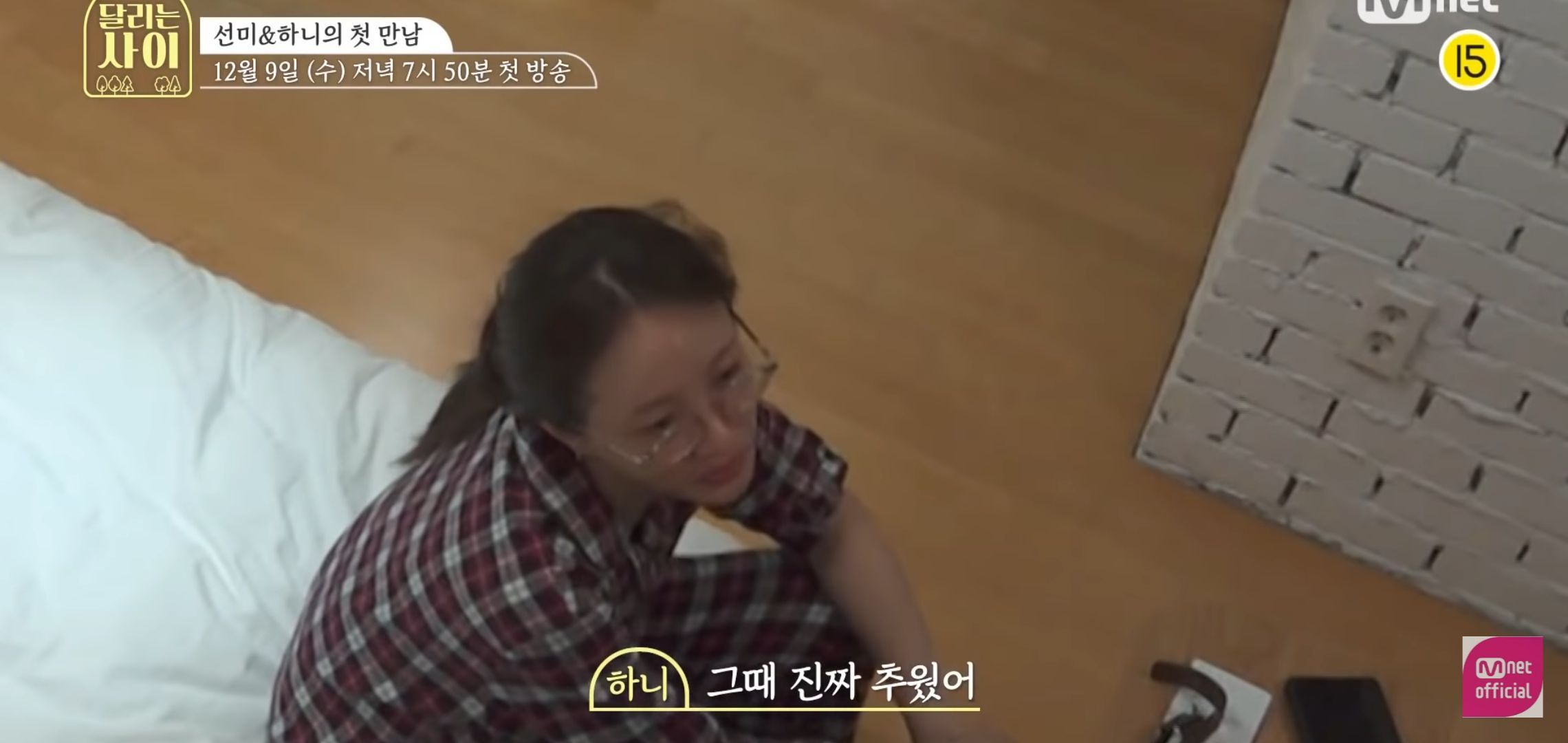 선미는 “평창에서 실오라기 같은 블라우스 입고 있었는데 (하니가) 패딩을 탁 (덮어줬다)”고 전했다.