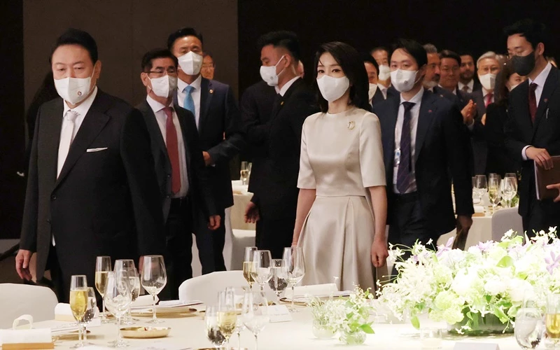 지난 10일 윤석열 대통령과 김건희 여사는 10일 오후 7시부터 9시까지 서울 중구 장충동에 있는 신라호텔 영빈관에서 외빈 초청만찬을 열었는데, 해당 만찬은 윤 대통령의 이날 마지막 공식 일정이었다.