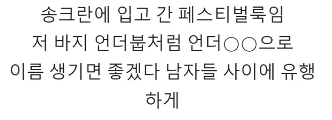 A씨는 “‘언더붑’ 패션 유행하니 이젠 팬티 쪽을” 라고 전했다.