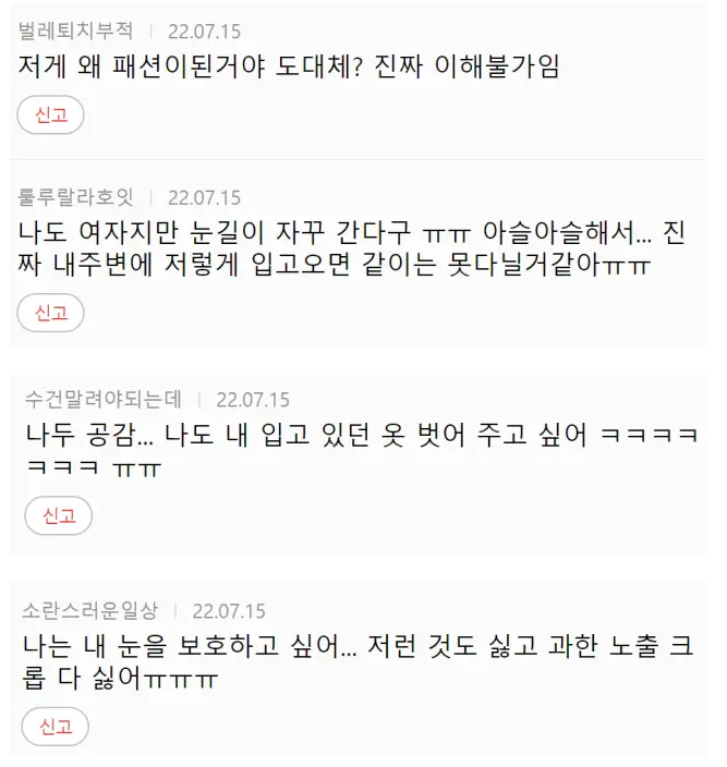 작성자 A씨는 “언더붑에 이은 충격 패션” 라는 제목의 글로 많은 이들의 궁금증과 이목을 집중 시켰다.