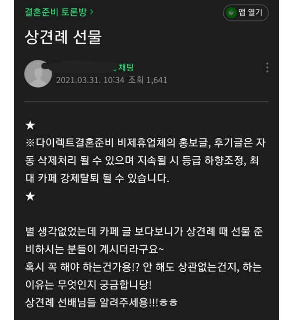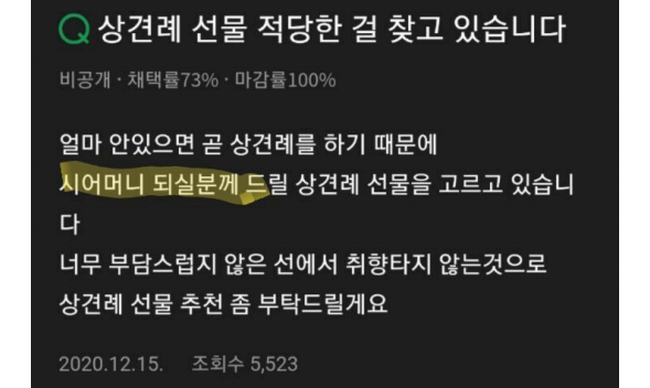 각종 온라인 커뮤니티에는 상견례 선물에 관련된 글들이 올라오면서 누리꾼들 사이에서 화제가 되고 있다.
