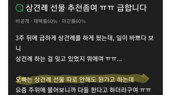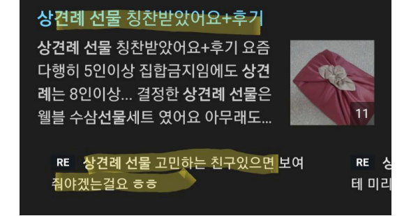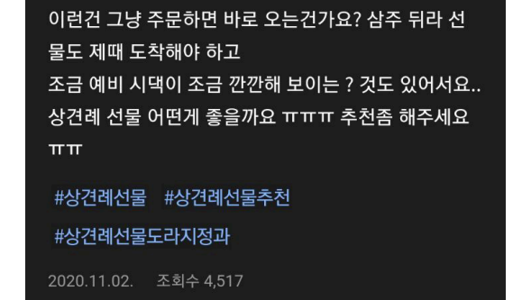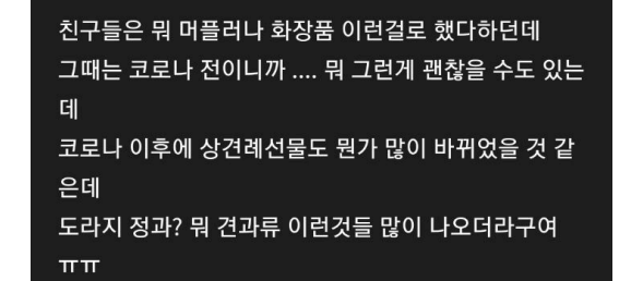 다음은 각종 커뮤니티에 올라온 상견례 선물에 관련된 글들이다.
