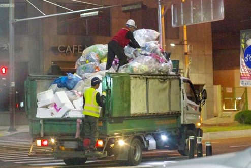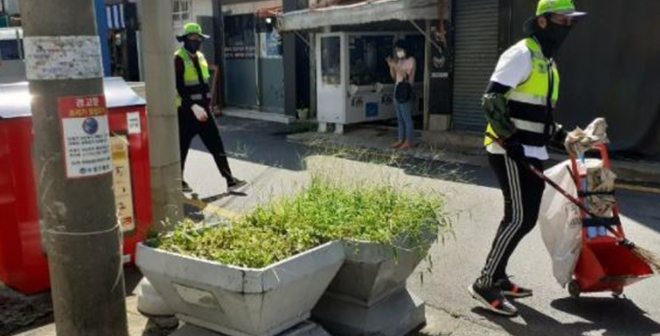 도로 주변이나 시설물을 청소하는 인원과 쓰레기 종량제 봉투나 음식물 쓰레기를 수거하는 인원으로 나뉜다.