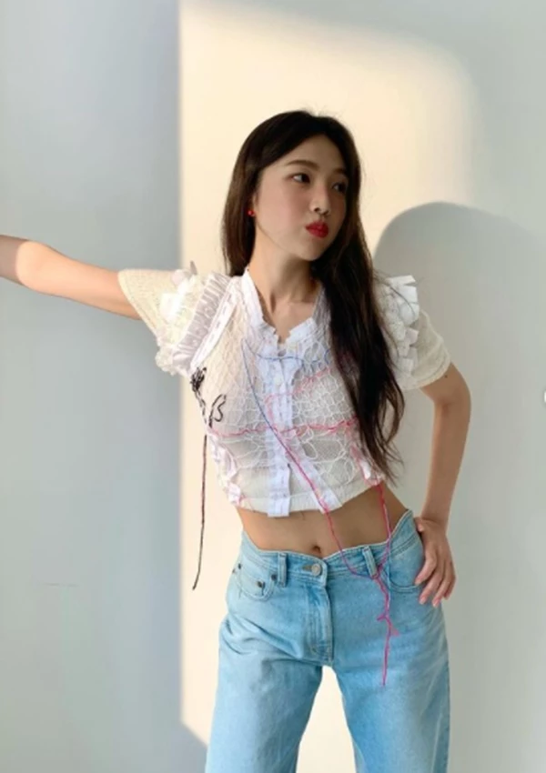 공개된 사진엔 크롭 블라우스에 청바지를 입은 조이의 모습을 확인할 수 있다.