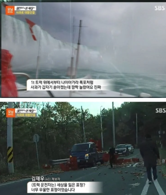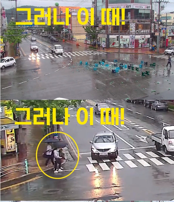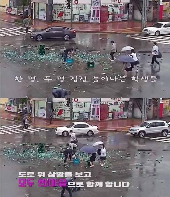 트럭에서 술병들이 다 떨어졌다.거기서 갑자기 등장하는 고등학생들