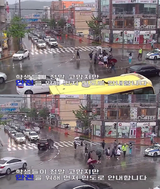 학생들에겐 고맙지만 안전상 이유로 학생들을 안전하게 인도로 안내하고 경찰이 마무리를 했다. 이에 감사의 인사를 표시한 포항북부경찰서.