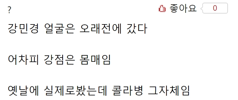 작성자 A씨는 “다소 충격적인 다비치 강민경 최근 와꾸 상태 ㄷㄷ” 라는 제목의 글로 많은 이들의 궁금증을 증폭시켰다.