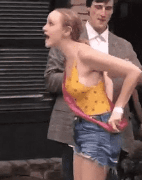 물 밖으로 나온 여성은 뒷 주머니를 만지며 옷 매무새를 고치고 있었다.