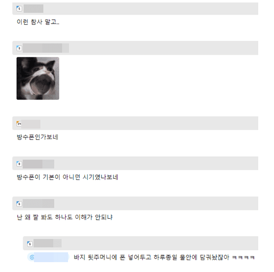 네티즌들은 “진짜 아찔하네”, “방수폰이 기본이 아니었던 시기였나 보다”, “물놀이 하면 진짜 흔히 생기는 일이다”, “나도 조심해야겠다”, “너무 웃프다”등의 다양한 댓글을 보였다.