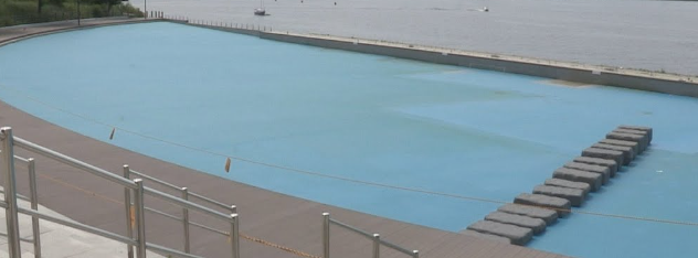 이 여성은 친구의 부름으로 물 밖으로 몸을 향하고 있었다.