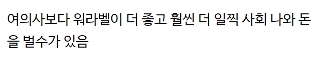 A씨는 “여의사보다 워라벨이 더 좋고 훨씬 더 일찍 사회 나와” 라고 전했다.