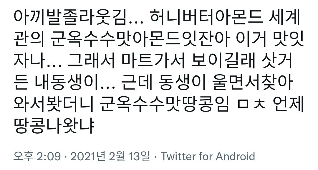 HBAF에서는 ‘허니버터아몬드’가 가 대표적으로 유명해 ‘땅콩’이 새로 나왔다는 사실을 모르는 사람들이 굉장히 많다.