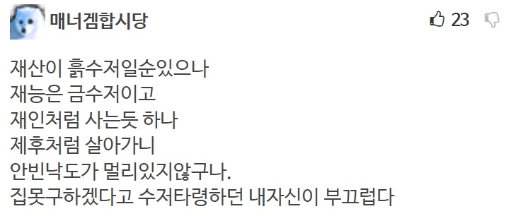 온라인 커뮤니티에는 “어느 흙수저의 하루”라는 제목의 글이 올라와 누리꾼들 사이에서 엄청나게 화제가 되고 있다.