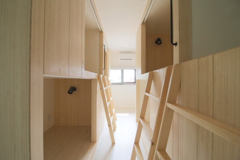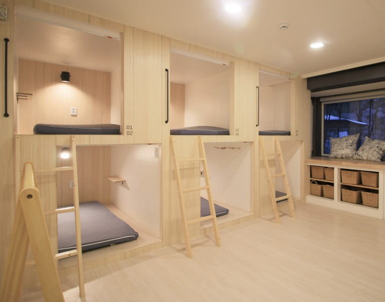 1층과 2층은 남녀 별도로 분리되어 있으며 주방, 화장실, 샤워실을 공유하는 형태다.