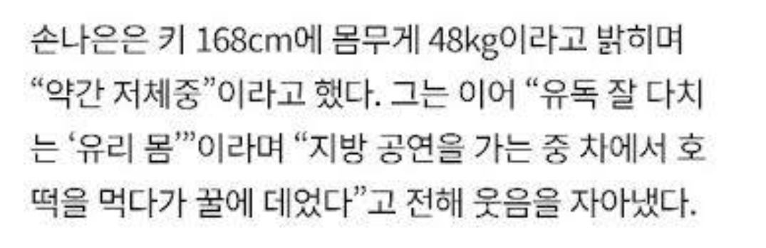 손목과 발목이 가늘고 예쁘며, 긴 기럭지와 몸매가 늘씬하고 비율이 좋아 아이돌 중에서도 손꼽히는 예쁜 몸매의 소유자다.
