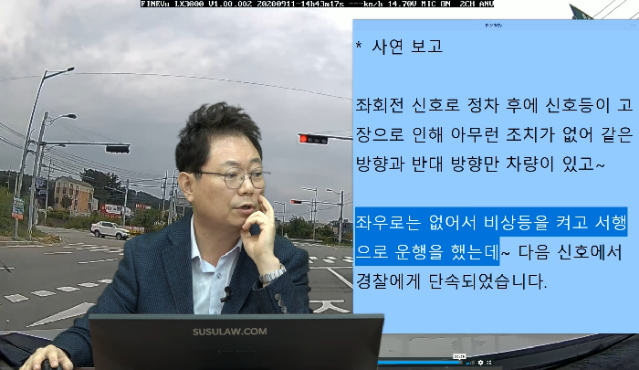 A씨는 신호등이 고장났다고 해명했지만, 경찰은 “신호등 녹색불은 들어 온다. 그러니 240m 뒤에 있는 다음 교차로의 신호등을 보고 진입해야 한다”고 말했다.
