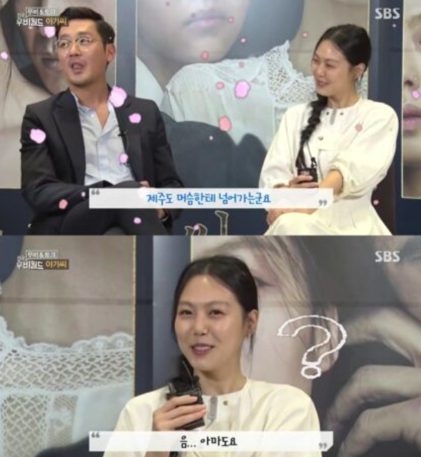 진행자가 역할 소개를 마친 김민희에게 “제주도 머슴한테 넘어가는군요”라는 질문을 했고, 김민희가 망설이다 “음, 아마도요”라 대답했다.