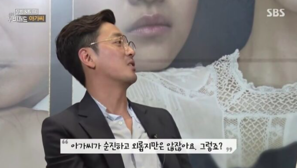 그러자 하정우가 “실제로 순진하고 외롭지만은 않잖아요, 그렇죠?”라 물었지만, 프로그램 내에서는 “실제로”라는 말 대신, “아가씨가”라는 자막을 달았지만 하정우는 “실제로”라는 말을 정확하게 했다.