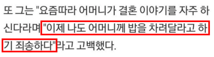 조인성은 아직까지 부모님과 함께 살며 어머니가 차려주는 밥을 먹는다고 했다.