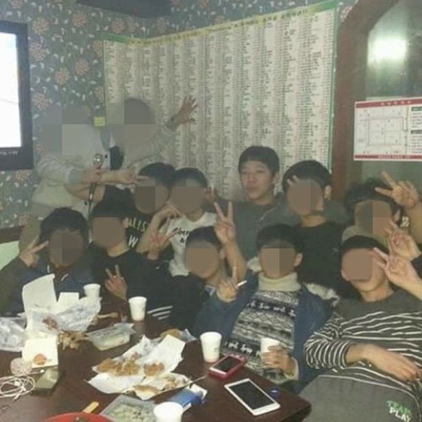 사진 속 양홍원은 여러 명의 친구들과 함께 어울려 기념사진을 찍고 있었다. 양홍원과 친구들은 서로의 몸을 밀착한 채 우정을 과시했다.